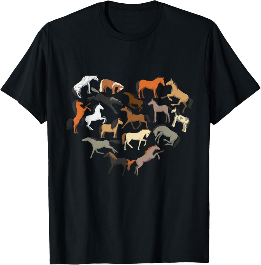 Horse Heart Collage Graphic Tee Horse Lover Farm Rider Casual Short Sleeve T-Shirt Men Women