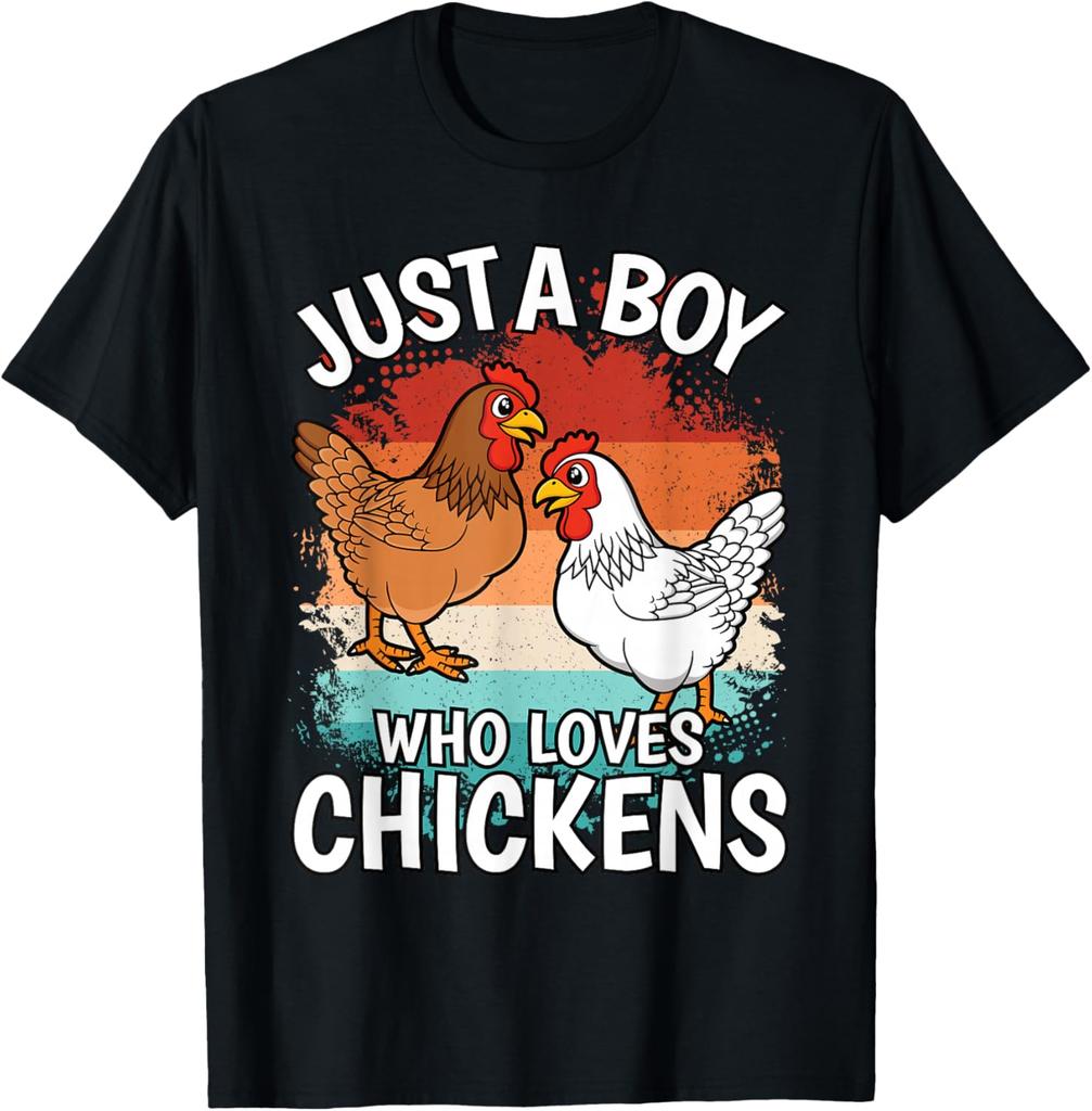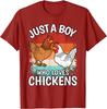 Just A Boy Who Loves Chickens Graphic Tee Retro Style Casual Cotton Short Sleeve T-Shirt for Men
