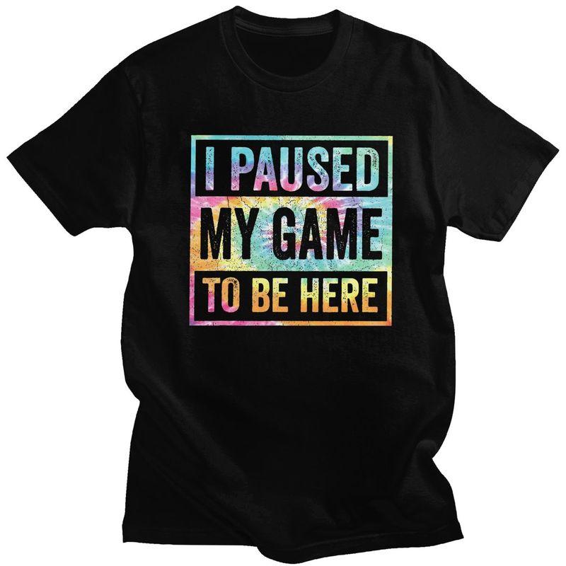 Custom Classic Gamer Humor Joke I Paused My Game To Be Here T Shirt Men Tshirts Streetwear Tee 100 Cotton Slim Fit Tshirt