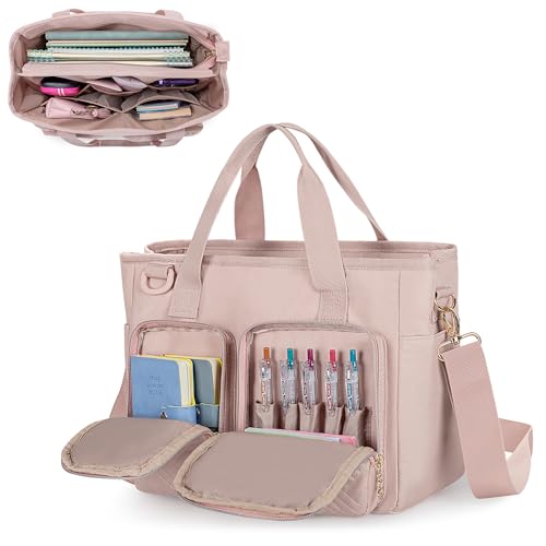Teamoy Tote Bag, 10 Pockets, A4 Size, D-Ring, and Pen Slot, Large Capacity, Lightweight, Shoulder Bag, Perfect for Commuting, School, or as a Mother's
