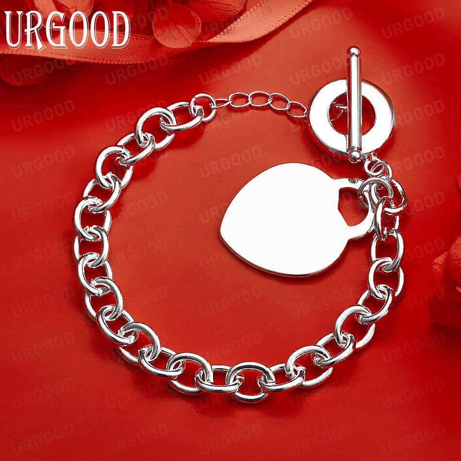 925 Sterling Silver Wedding Gift Heart Pendant Bracelet Fashion Jewelry