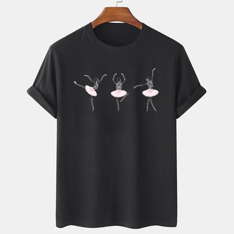Szkielet Taniec Baletowy Nadruk Gotycki T-shirt Krótki Rękaw Retro Zabawny Halloweenowy T-shirt Hippie Urocze Graficzne Koszulki Sztuka Odzież Damska