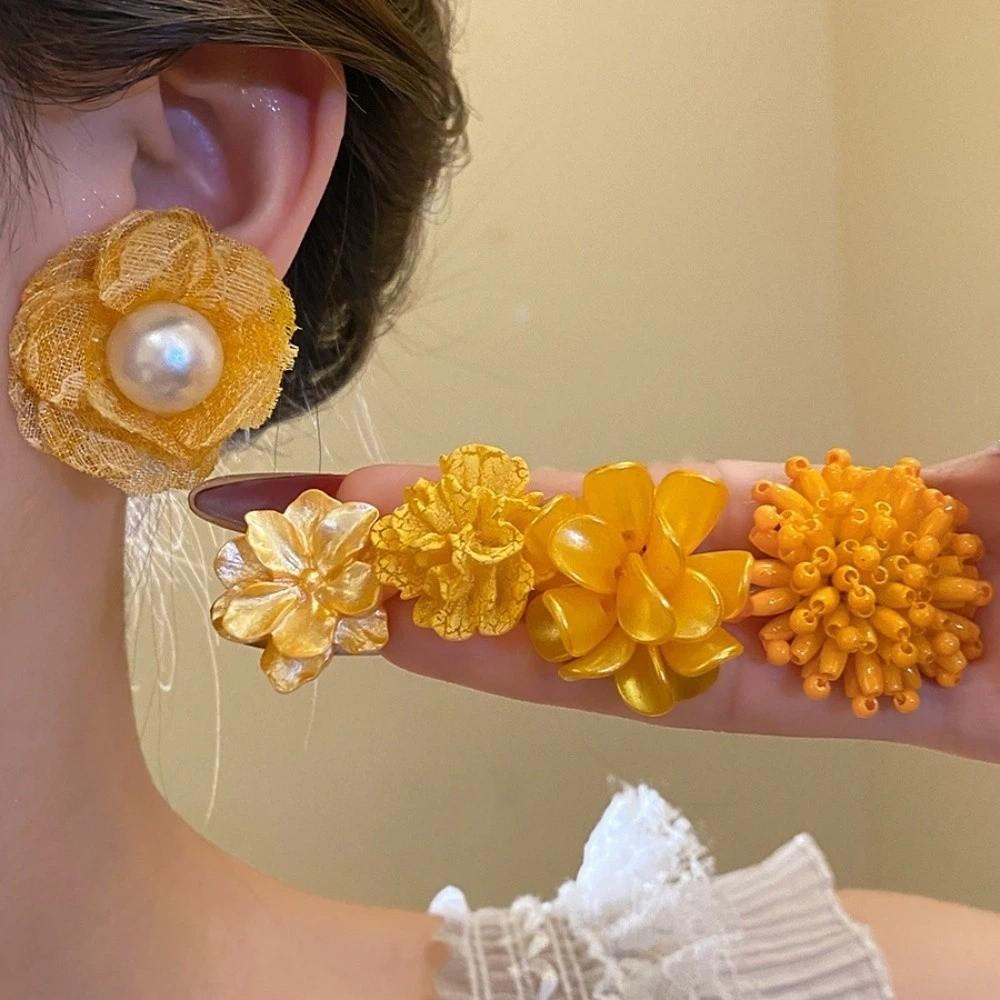 5 Pairs Acrylic Acrylic Flower Stud Earrings Pearl Korean Style Earrings Holiday