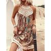 Summer Sleeveless Sweet Printed Lace Short Dress Elegant Fashion Loose Tassel A-line Party Holiday Dresses Tank Casual Simple Clothing