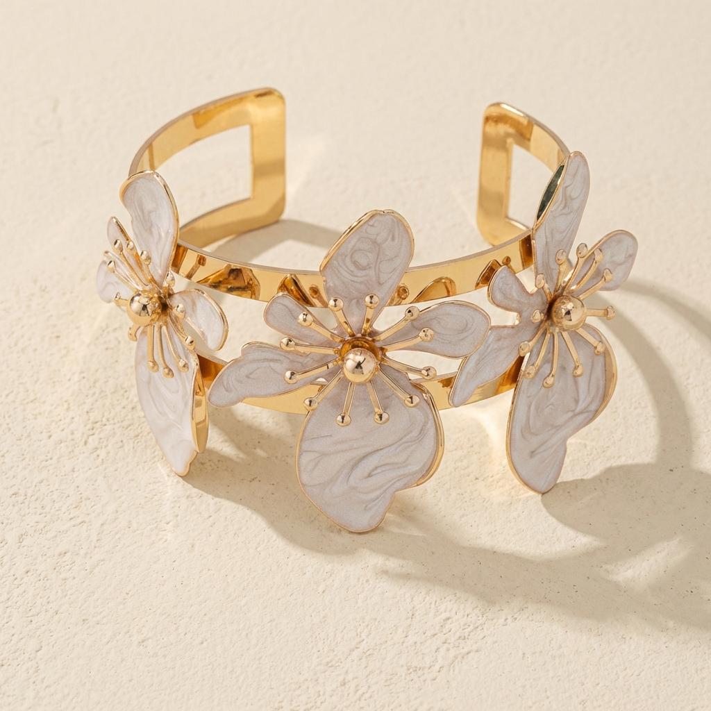 Bohemian Duży Kwiatowy Otwarty Bransoletka dla Kobiet Statement Floralna Bransoleta Letnia Plażowa Ślubna Imprezowa Biżuteria Prezent