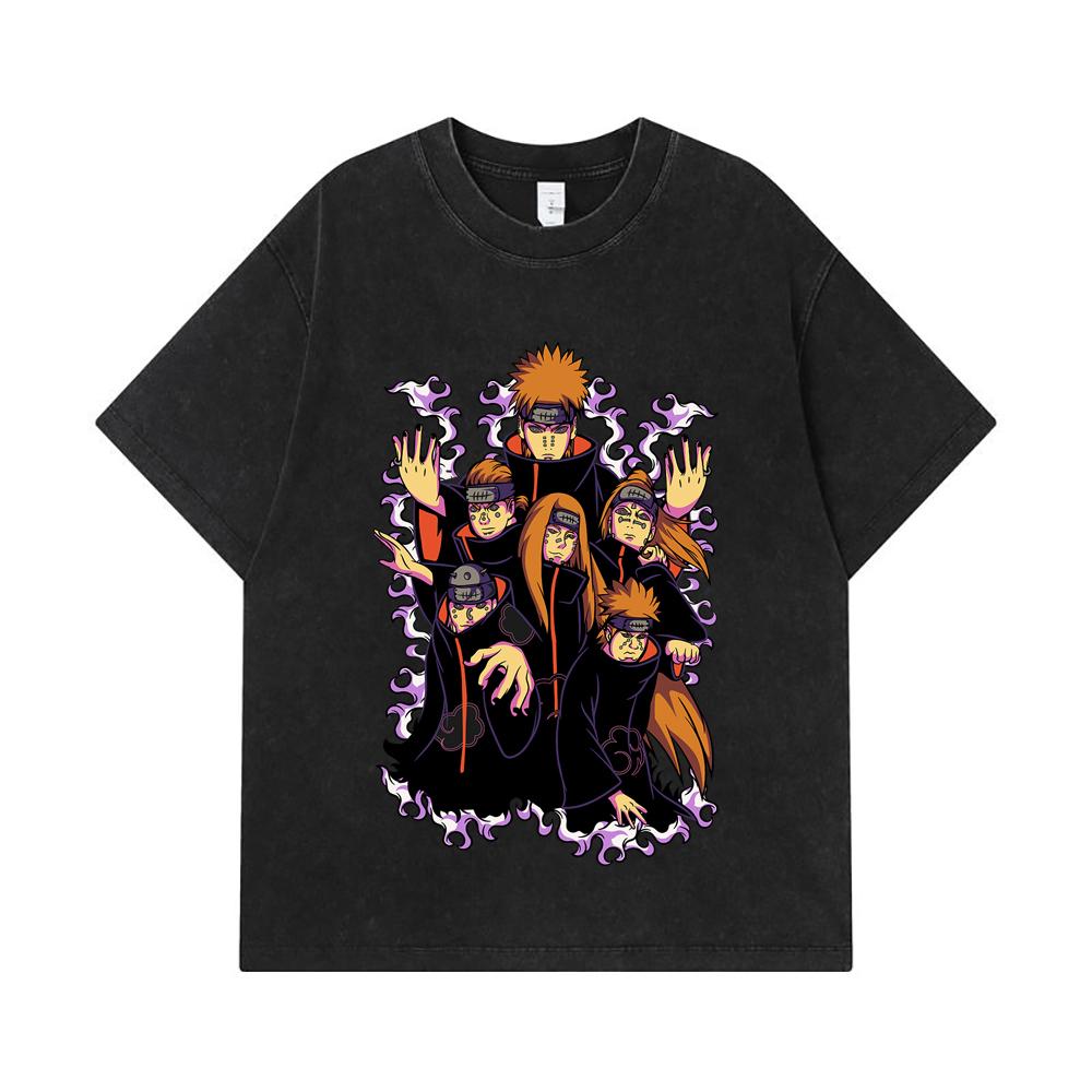 275 GSM Washed T-shirts 100% Cotton Naruto V15 Pain Print Unisex Heavy Cotton T Shirt