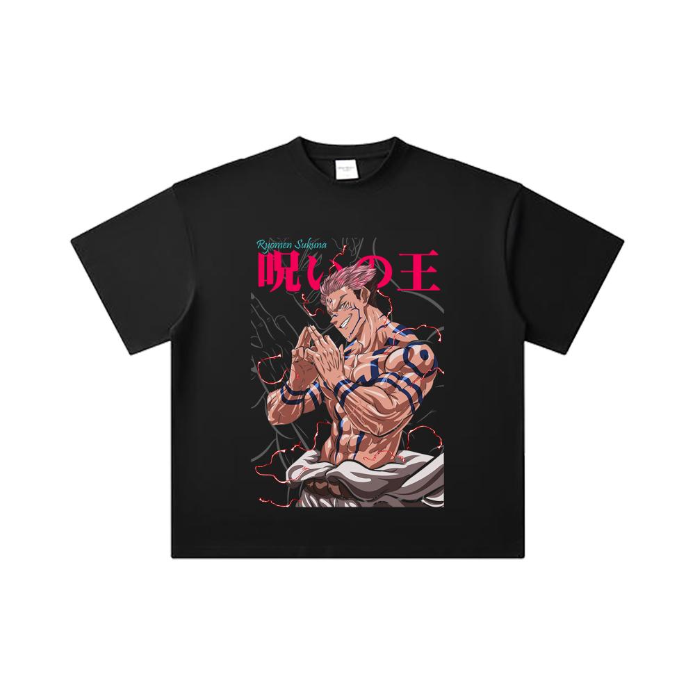 260 GSM Double Yarn 32 Count 100% Cotton Jujutsu Kaisen V46 Sukuna Print Unisex Heavy Cotton T Shirt