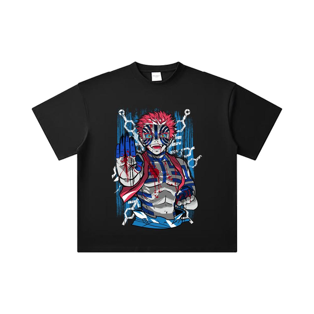 260 GSM Double Yarn 32 Count 100% Cotton Demon Slayer V79 Akaza Print Unisex Heavy Cotton T Shirt