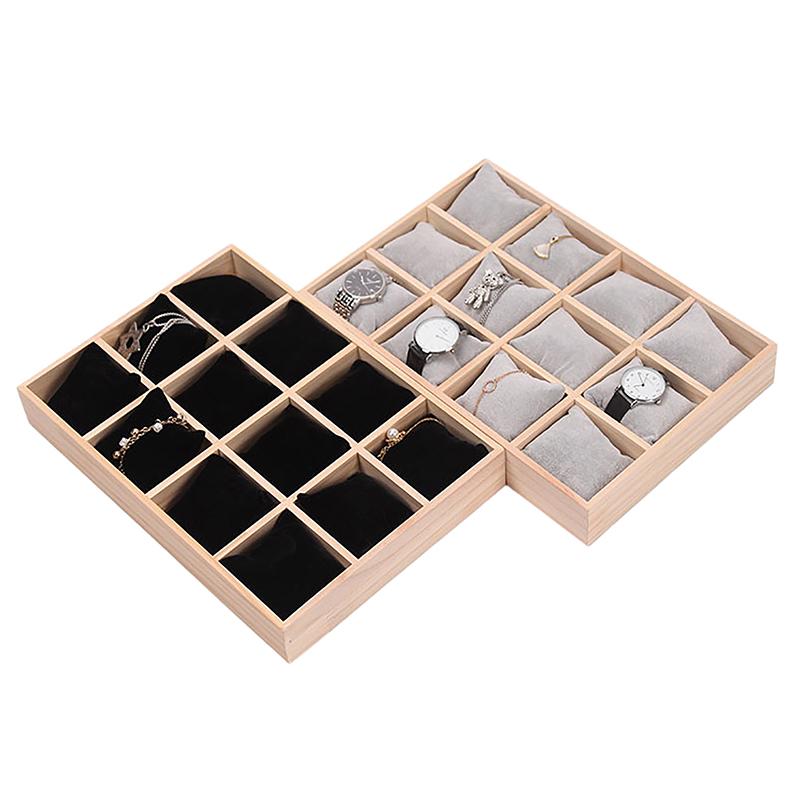 Drewniany 12-miejscowy organizer na zegarki, biżuterię i bransoletki z wyjmowanymi poduszkami flanelowymi