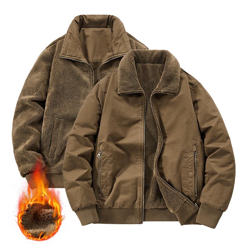 Zimowa dwustronna męska kurtka robocza z wełną jagnięcą i pogrubioną czystą bawełną, z kołnierzem stójką, casualowa, ciepła kurtka