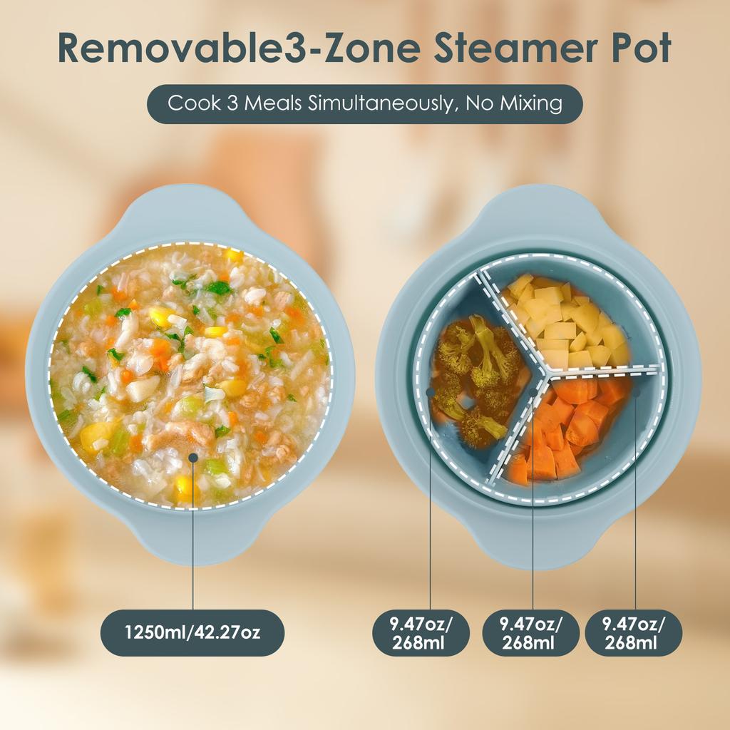 42oz Silicone Soup Pot Liner Steamer Bowl 3 Grids Food Vegetable Container Oven Microwave Safe Kitchen Cooking Baking Gadget