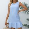 Women's Casual Short Summer Dress Sleeveless Round Neck Cute Ruffle Dress