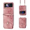 Crossbody Lanyard Wallet Cards Solt Leather Case for Samsung Galaxy Z Flip 6 5 4 Flip5 3 Flip4 5G Card Holder Phone Cover Coque