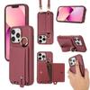 Wristband Wallet Cards Solt Crossbody Leather Case For iPhone 15 16 Pro Max 14 Plus 13 12 11 Ring Holder Lanyard Bag Pouch Cover