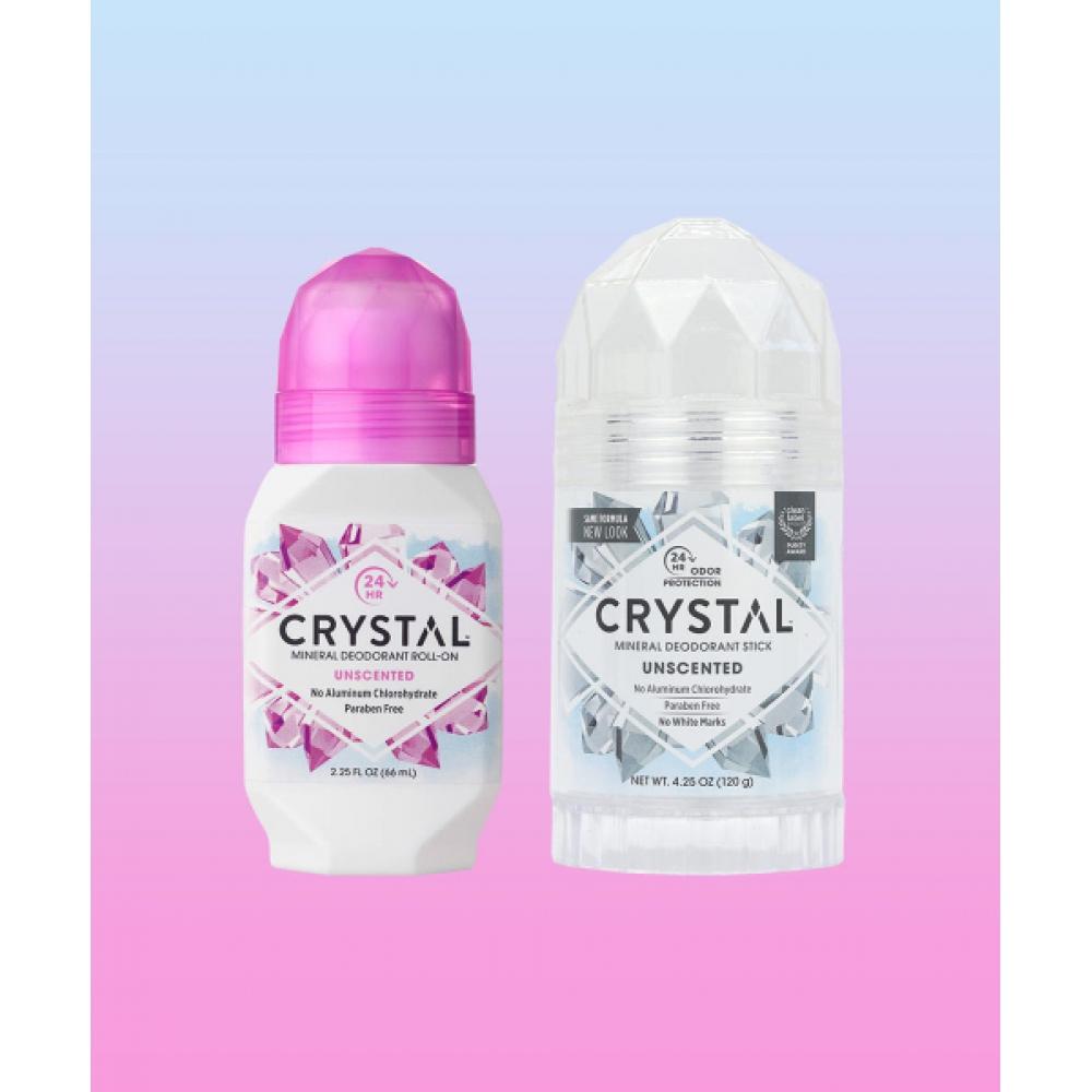 CRYSTAL Deodorant 120g Unscented Large Capacity Stick & Unscented Roll-On Set includes a large capacity stick and a roll-on designed without scent. This product is applied lightly to clean and fully dried skin after a shower, providing long-lasting effects with daily use. It is suitable for all skin types and offers convenience through both stick and roll-on forms.