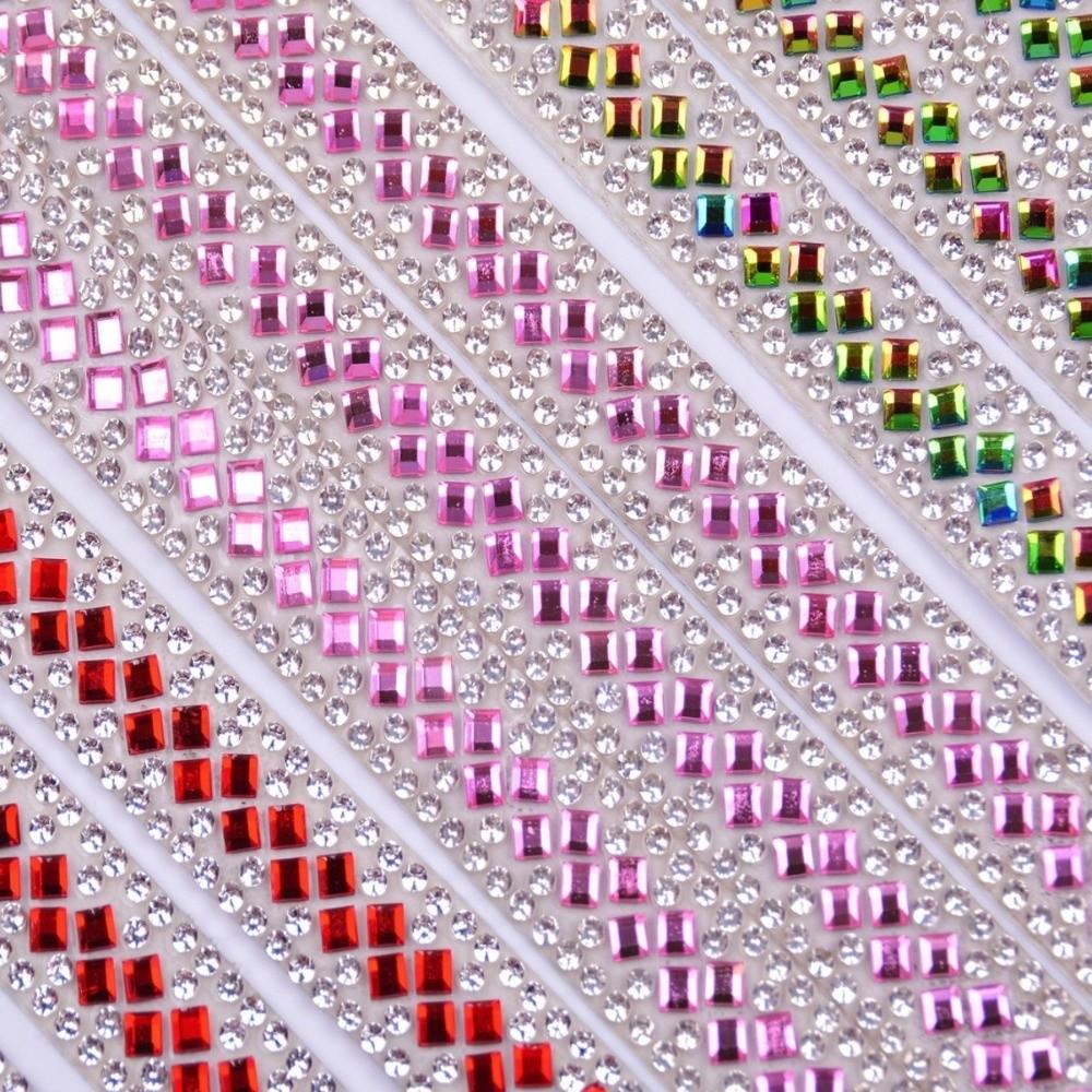 Self Adhesive Rhinestone Chain Colorful Rhinestone Band Sticky Trim Crystal Trim Bag Decoration