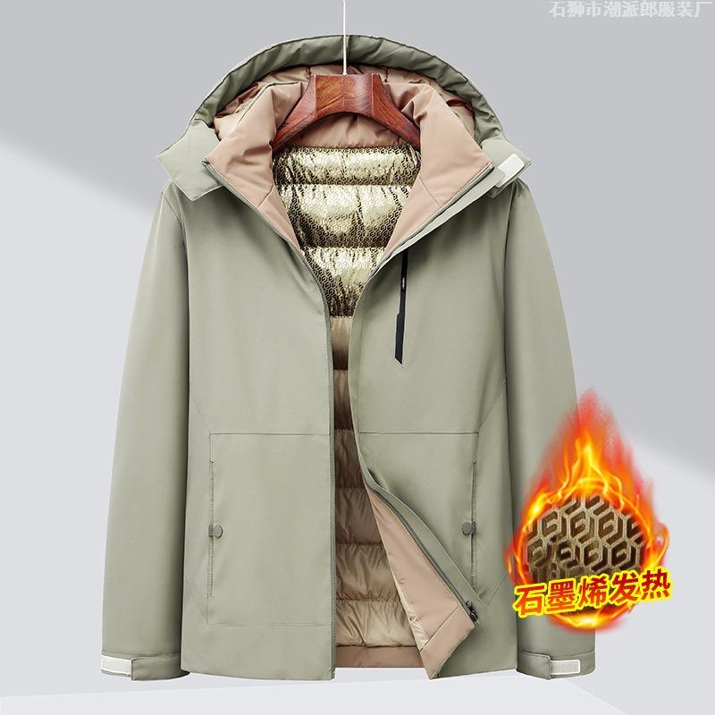 New Solid Color High-end Men's Cotton-padded Clothes Outdoor Graphene Warm Thickened Lock Temperature Inner Hooded Atmosphere