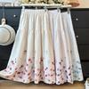 Prairie Chic Spring Summer Women Pink Skirt High Waist Floral Embroidery Sweet Skirt Mori Girl Elegant Delicate Midi A-Line Skirt