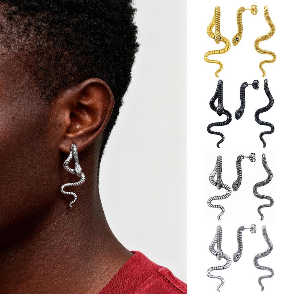 Punk Snake Stud Earring for Men Women,Gothic Anti Allergy Stainless Steel Snake Body Earrings,Vintage Halloween Jewelry Gift