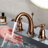 Gold Basin Faucet Brass Rose Gold Bathroom Faucet Widespread Bathroom Sink Faucets 3 Hole Double Handle Hot And Cold Water Tap