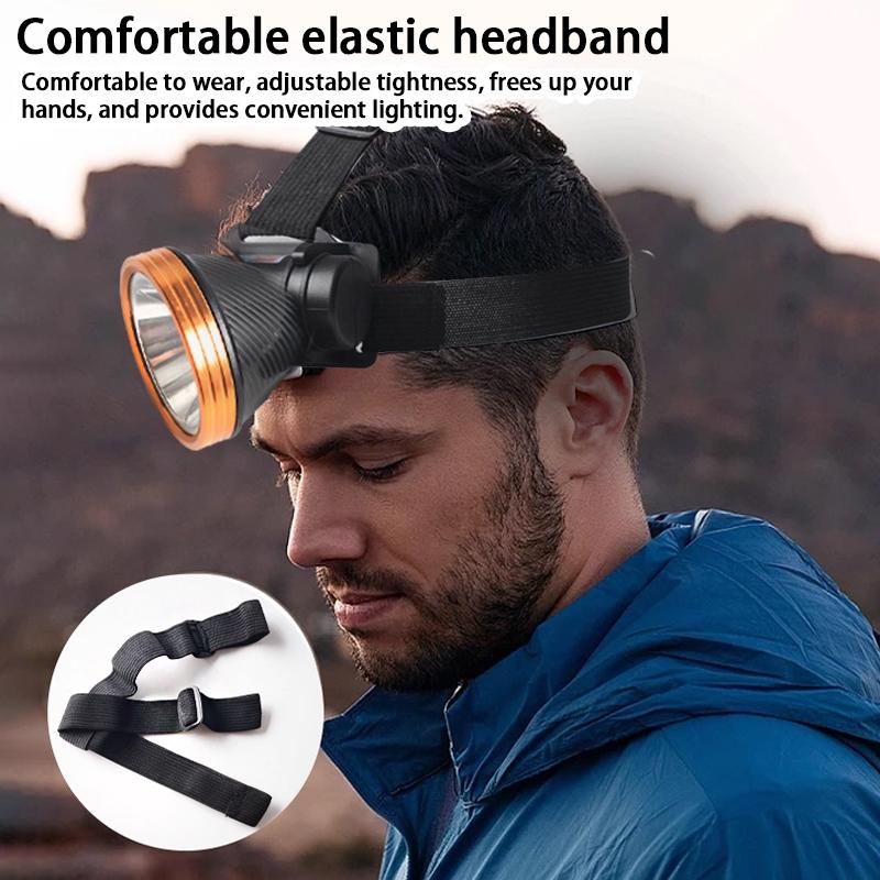 Wysokomocna wodoodporna latarka czołowa LED o dalekim zasięgu, ładowana przez USB, odpowiednia do biwakowania na świeżym powietrzu i noszenia