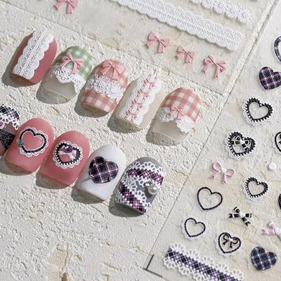 1 szt. słodkie naklejki na paznokcie z koronką w kształcie kokardy Love Heart różowe białe czarne koronkowe kokardy samoprzylepne ozdoby do paznokci naklejki akcesoria