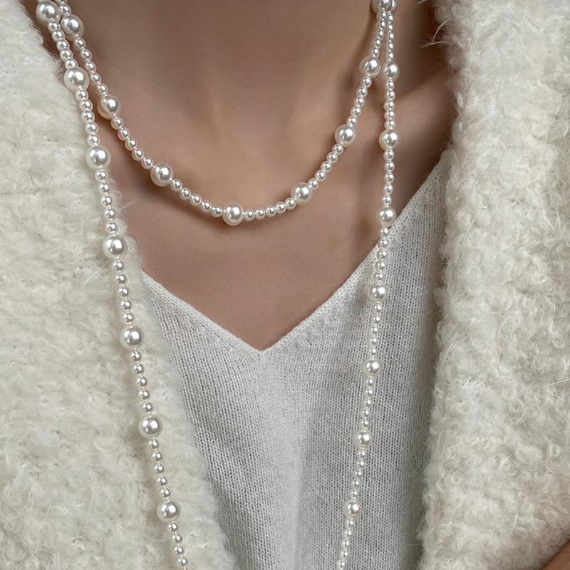 Long Multi Layered Pearl Necklace For Women Temperament Collar Chain Sweater Chain Necklaces Luxury Jewelry Accessories