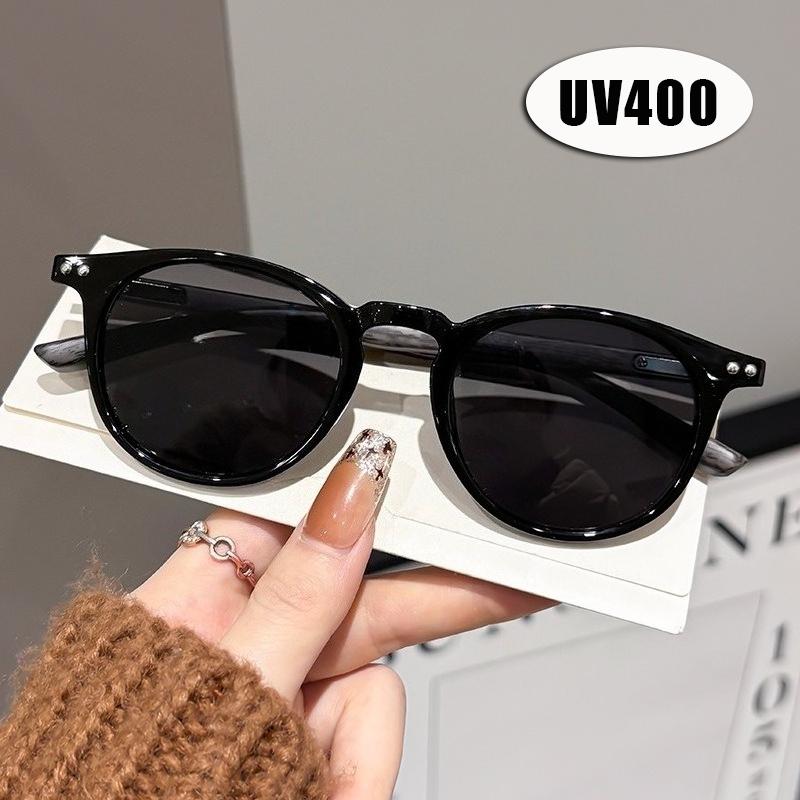 Fashion Round Fra1me Sunglasses Women's Men's Retro Sunshade UV Sun Glasses Wood-grain Temples Trend Outdoor Travel Eyewear