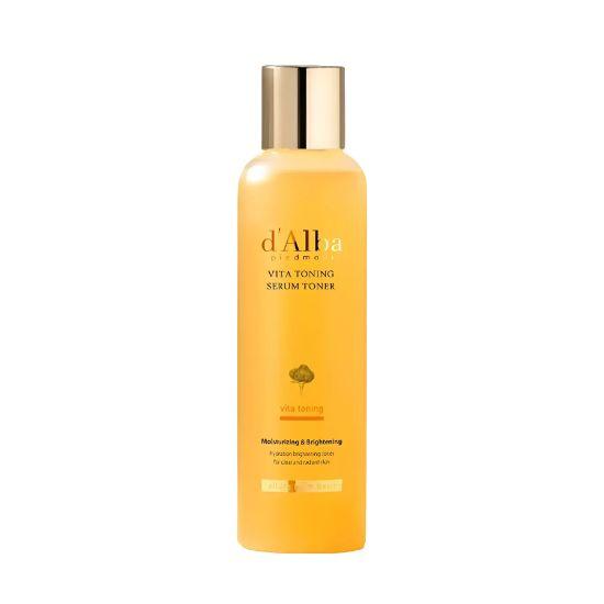 d'Alba Vita Toning Serum Toner is a brightening serum-type toner designed to improve dull skin tone and provide deep hydration. Infused with Vitamin ingredients and White Truffle extract, it helps revitalize the skin while enhancing natural radiance. The lightweight serum-toner texture absorbs smoothly, delivering moisture and nourishment without heaviness. Ideal for daily skincare to achieve clearer, brighter, and healthier-looking skin.