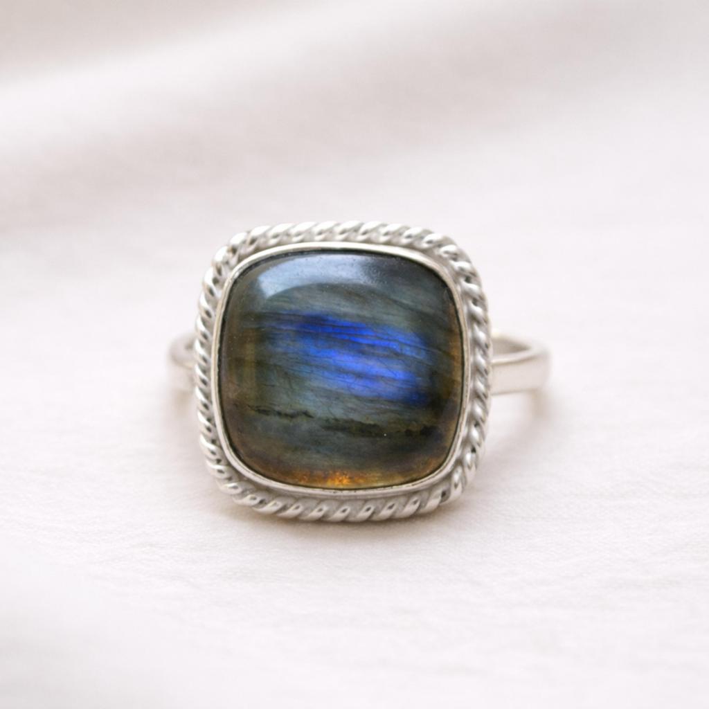 Blue Labradorite Square Shape Statement Ring in 925 Sterling Silver – Handmade Minimalist Boho Ring