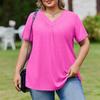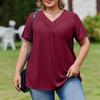 Damska Modna Codzienna Luźna Bluzka Plus Size z Krótkim Rękawem Elegancka z Dekoltem V Do Pracy