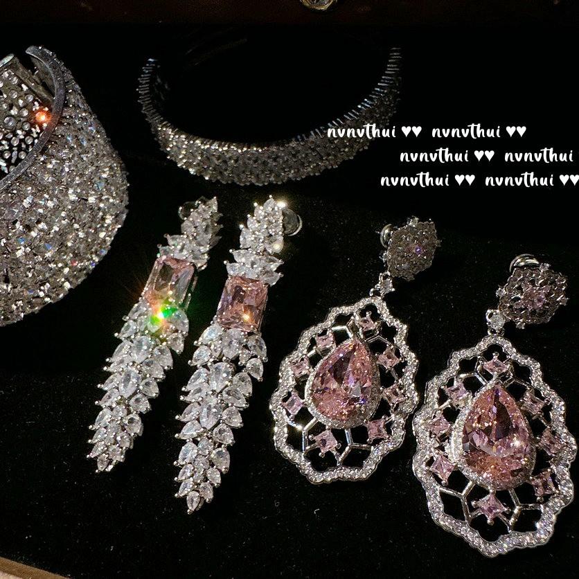 Princess On The Run Powder Water Drop Gem Honeycomb Earrings, Grandly Plated 18K Gold Gypsy Wheat Spike Zircon Bracelet
