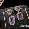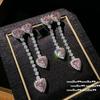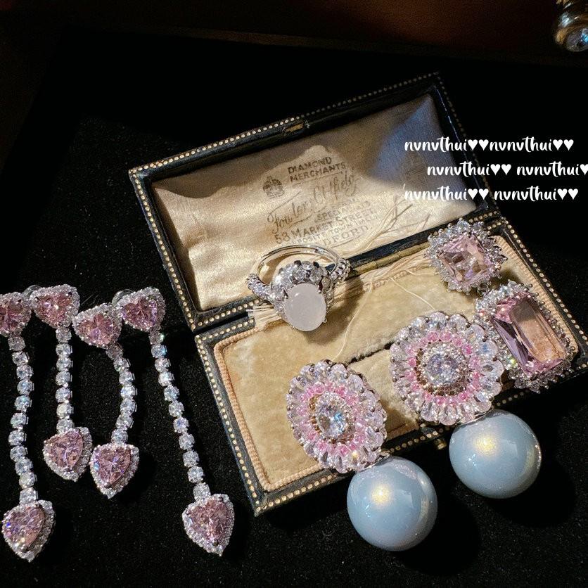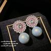 Papalacha Pink Flower Plate Gemstone Pearl Earrings Annual Meeting Lady Plated 18K Gold, Barbie Pink Rectangular Zircon Earrings