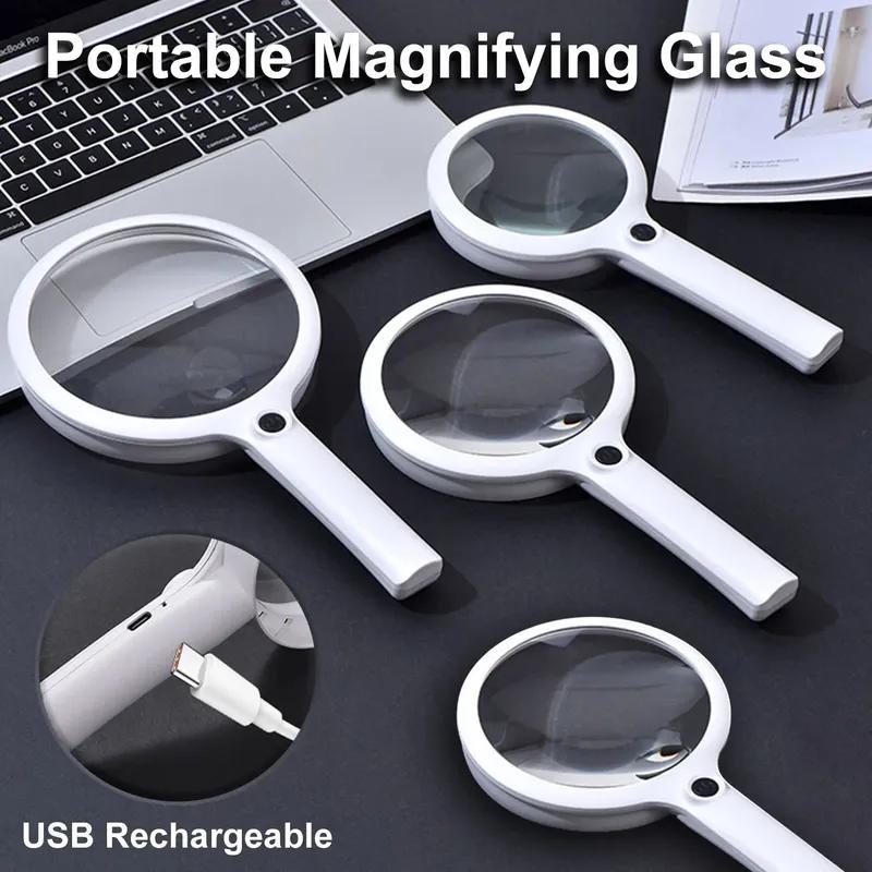 Handheld Magnifier 10/15/30X Rechargeable Illuminated Magnifying Glass with 3 Light Modes Portable Magnifier for Reading Repair