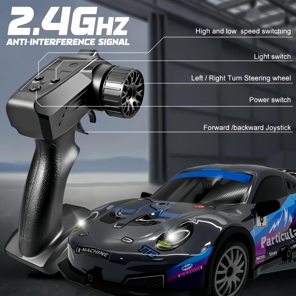 1:24 Scale RC Drift Car 4WD 2.4GHZ 28km/h HighSpeed Alloy Metal Racing Car With Drift Tires Barricades And LEDLights Gift For Boys
