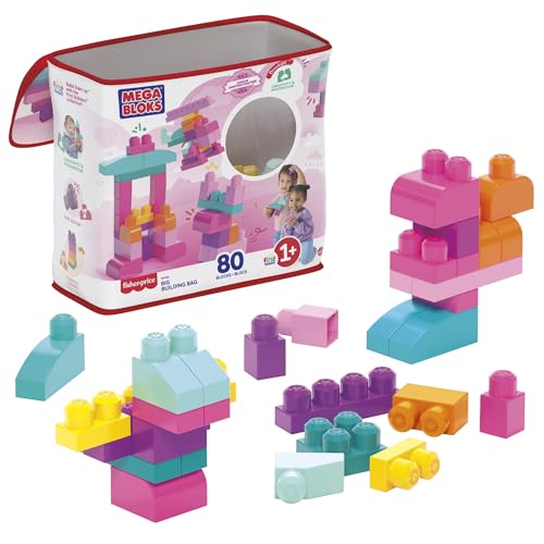MEGA Mega Blocks 80-Piece Block Pack for Ages 1 and Up, Pink, Educational and Learning Toy, 80 Pieces, Pastel, DCH62