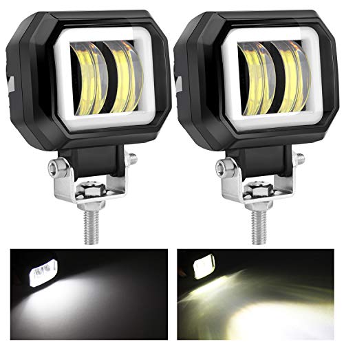 KAWELL 40W LED Motorcycle Fog Lights, Round, Squid Ring Design, Work Light with Daytime Running Light, 12V/24V Universal, IP68 Waterproof, Work Light,