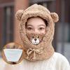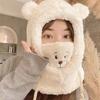 Cute Cartoon Bear Lamb Wool Beanie Hat for Women Soft Plush Headgear with Neck Warmer Casual Outdoor Mask Autumn Winter Adults