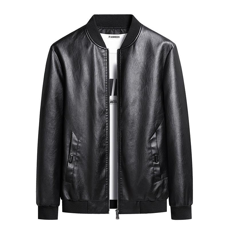 Kurtka skórzana Kurtka ze skóry PU Kołnierz bejsbolowy Kurtka skórzana bez kaptura Kurtka męska Ponadgabarytowa kurtka skórzana