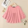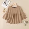 ZANZEA Damska Koreańska Codzienna Okrągły Dekolt Rękaw 3/4 Dzwonowy Plisowana Bluzka Lotos