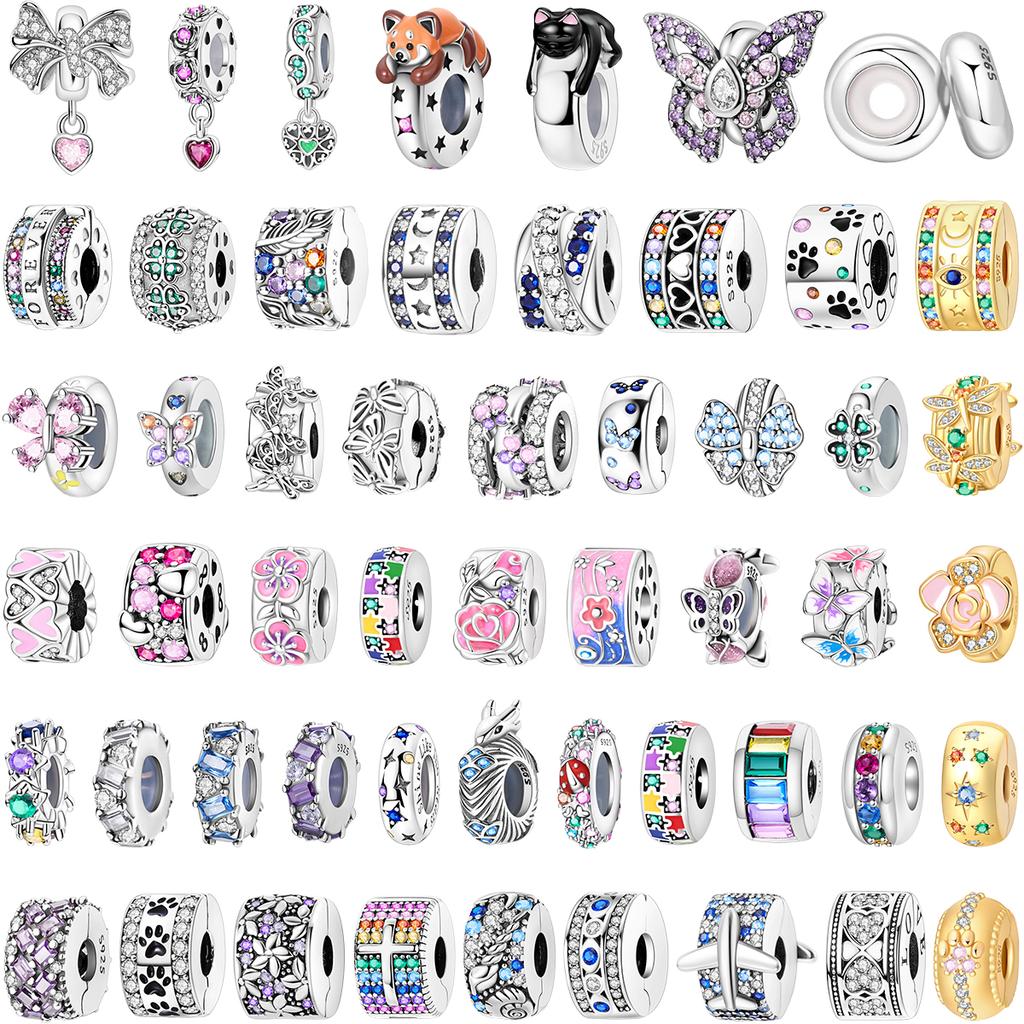 925 Silver Paw Prints Flowers Stars Moon Butterfly Safety Buckle Spacer Beads Fit Bracelets Necklace DIY Jewelry Gifts