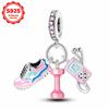 925 Silver Pink Cute Lovely Butterfly Perfume Girl Charms Beads Fit Bracelet DIY Making For Woman Jewelry