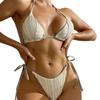 Rust Shiny Bandeau Bikini Set Metal Ring Side Tie Two Piece Swimsuit