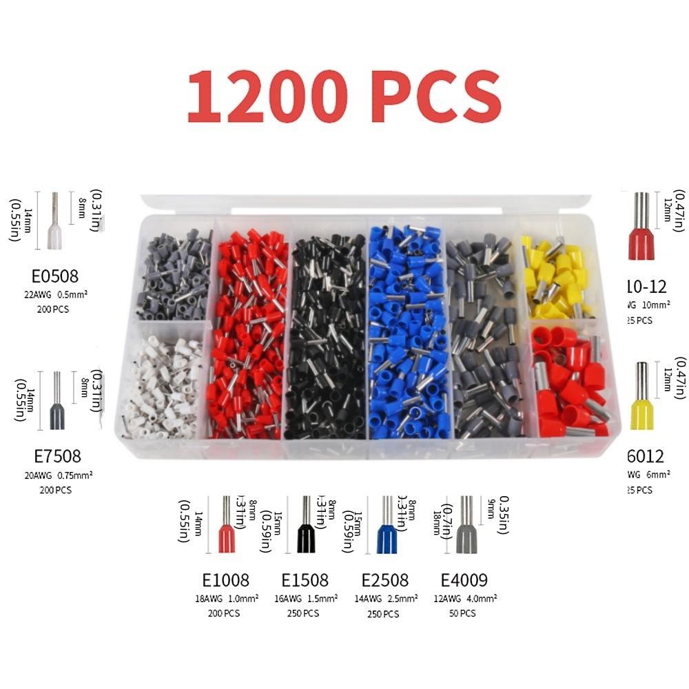 300/1200pcs Electrical Tube Insulated Terminal Kit, HSC8 6-4 Plier, AWG 22-8 Terminal Connector, Tubular Crimp Terminals