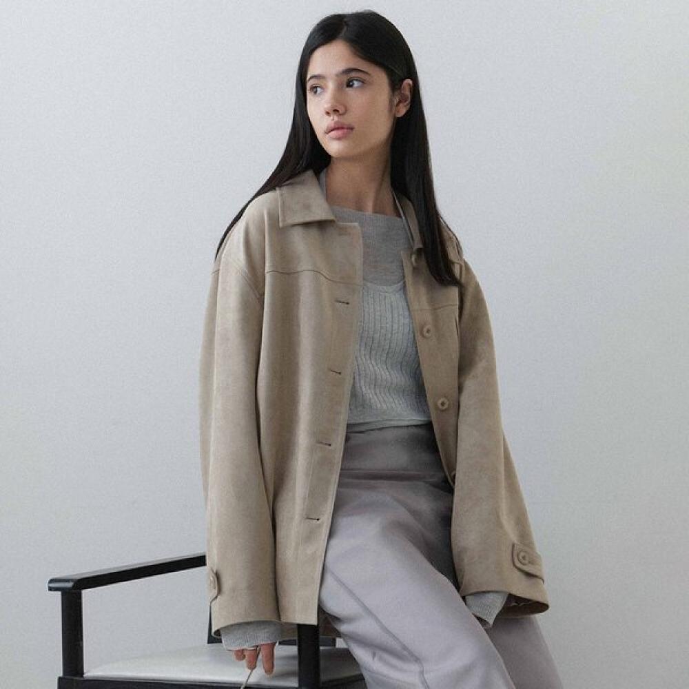 The On&On Shirt Suede Jumper NEL6SM223_97 is an outerwear piece suitable for transitional seasons, made from soft and lightweight faux suede material. It is designed to be comfortable to wear with a light weight, featuring standout details on the sleeves and built points at the bottom of the body. The product is crafted with a soft touch and colors that are well-suited for mid-seasons.
