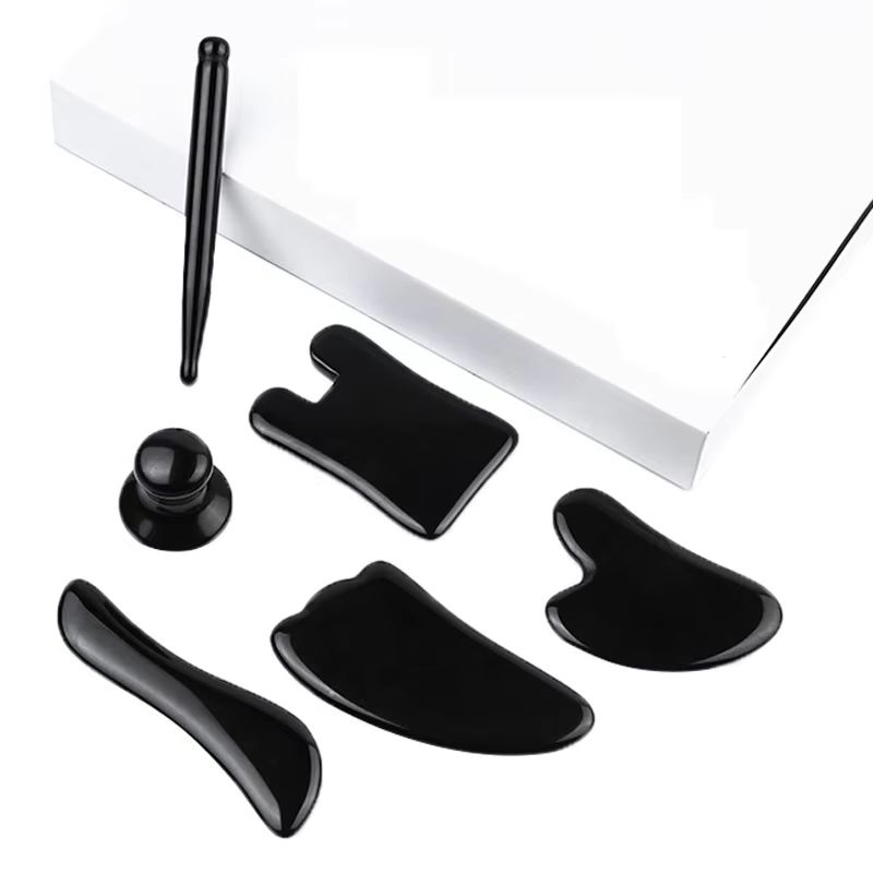 1Pc Black Obsidian Gua Sha Board Facial Massage Tool Scraping Jade Roller For Spa Acupuncture Therapy Trigger Point For Body
