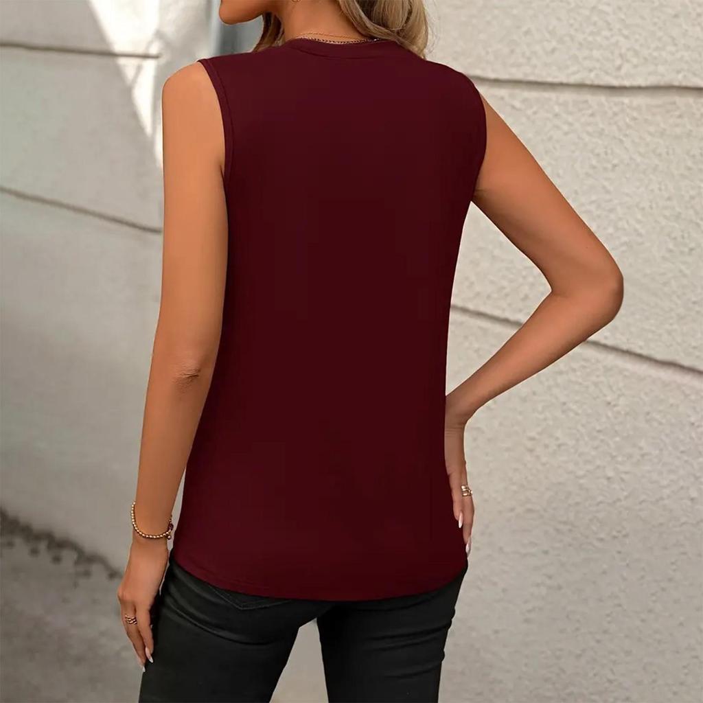Damska moda swobodna seksowna jednolity kolor okrągły dekolt bez rękawów luźny top bez rękawów