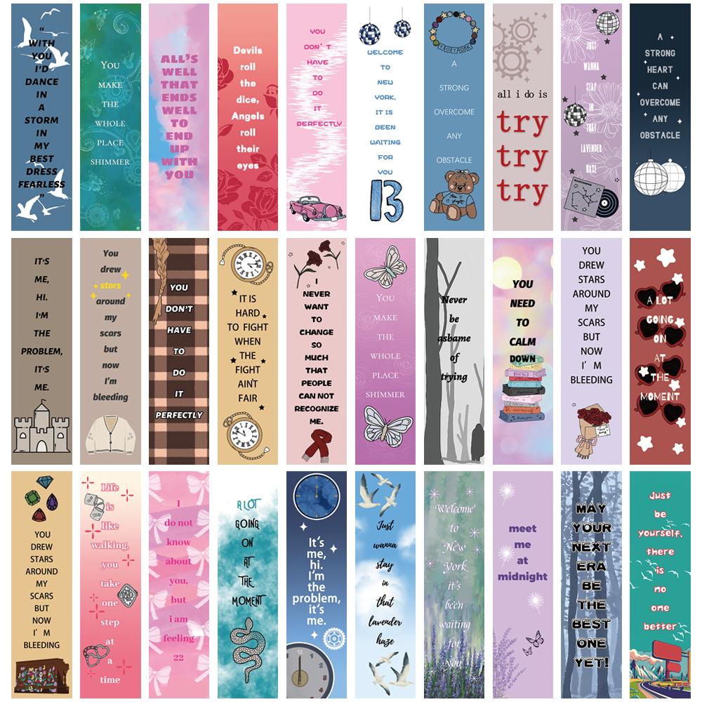 30PCS lyric Bookmarks Aesthetic Modern Funny Laptop Luggage Cartoon Landscape Decorative Office Creative Stationary Bookmark