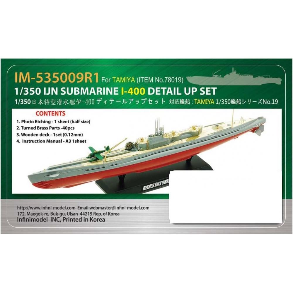 The Infini model 1/350 IM series Japanese Navy Submarine I-400/T Upgrade Set is the perfect detailing set for marine model enthusiasts. This set includes etching parts for detailed upgrades of various parts of the T company 1/350 Japanese Navy Submarine I-400, as well as wooden decks made from actual wood. Added metal parts include barrels, a 14cm gun barrel, and a folding mast. This product contains parts for assembly, and the main body is not included. Glue and tools needed for assembly must be prepared separately.