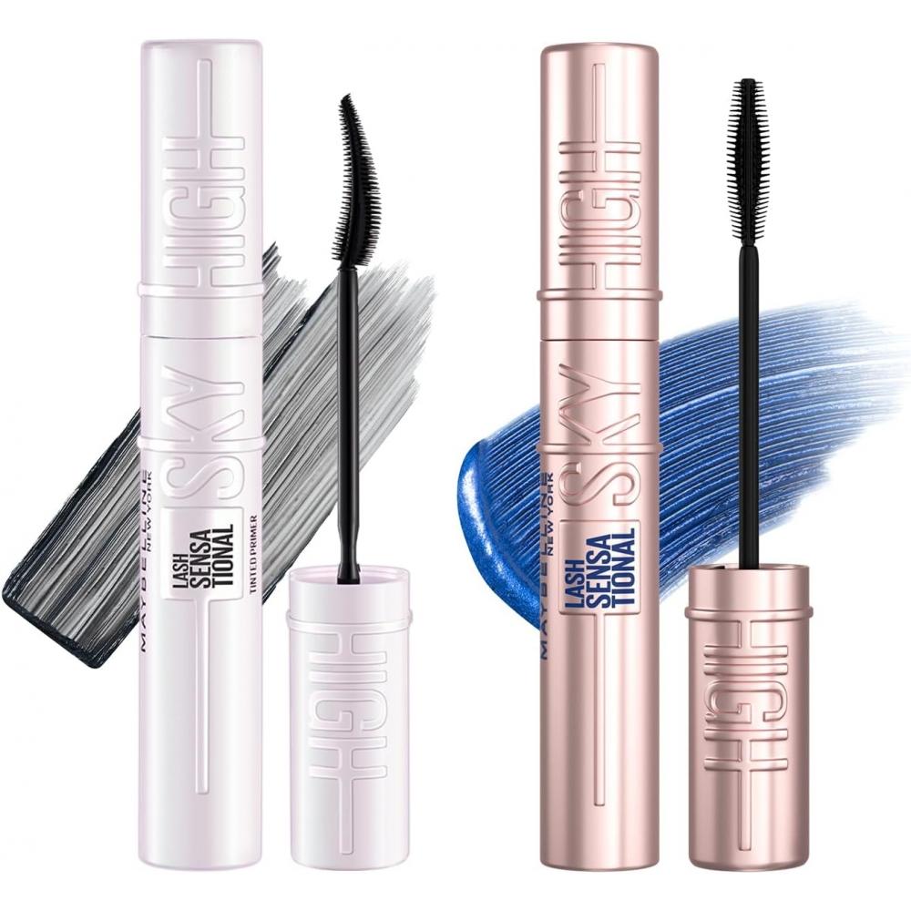 This set combines Maybelline Sky High Mascara Waterproof 06 Yoake Bluege and Sky High Mascara Primer 01 Black, which are best-selling products designed to accentuate the eyes. The mascara provides vivid color and rich volume, while the primer helps maintain the curl of eyebrows and lashes.